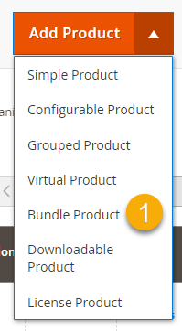 - Click on the little arrow on the Add Product Button and select Bundle Product