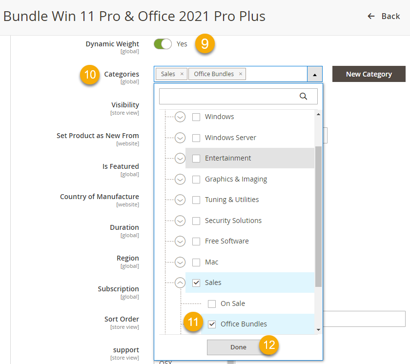 11. Make sure to select a sub category, so that the product will show up in the Mega Menu