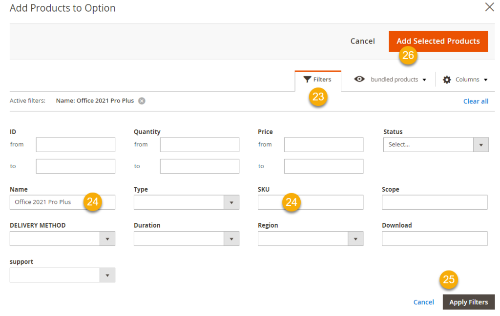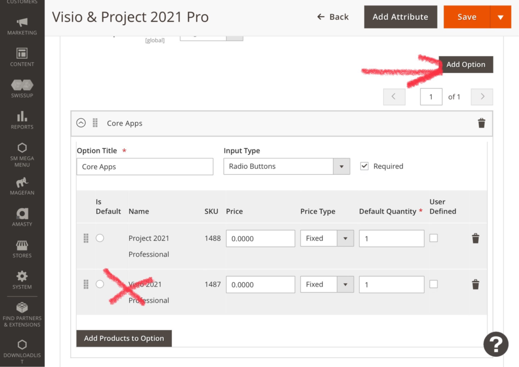 NOTE: Every product must be in a separate option (see point 18). You cannot list 2 products under the same option. If you have e.g. 2x core apps in the bundle, they must be separated out.
