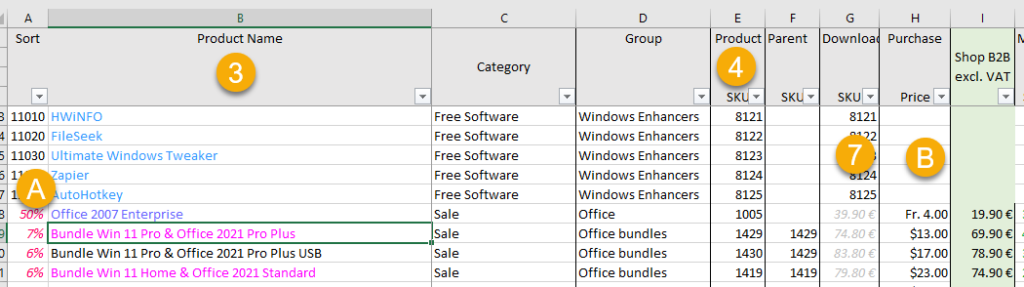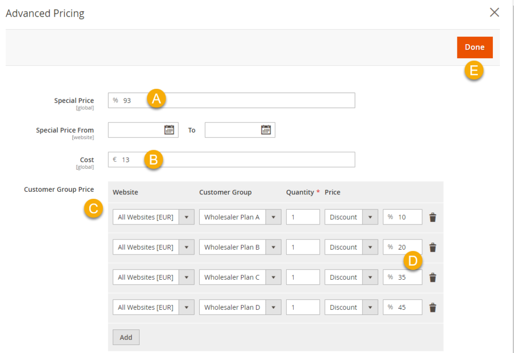 C. Set the price plan discounts (see price list columns K, N, Q, T)
