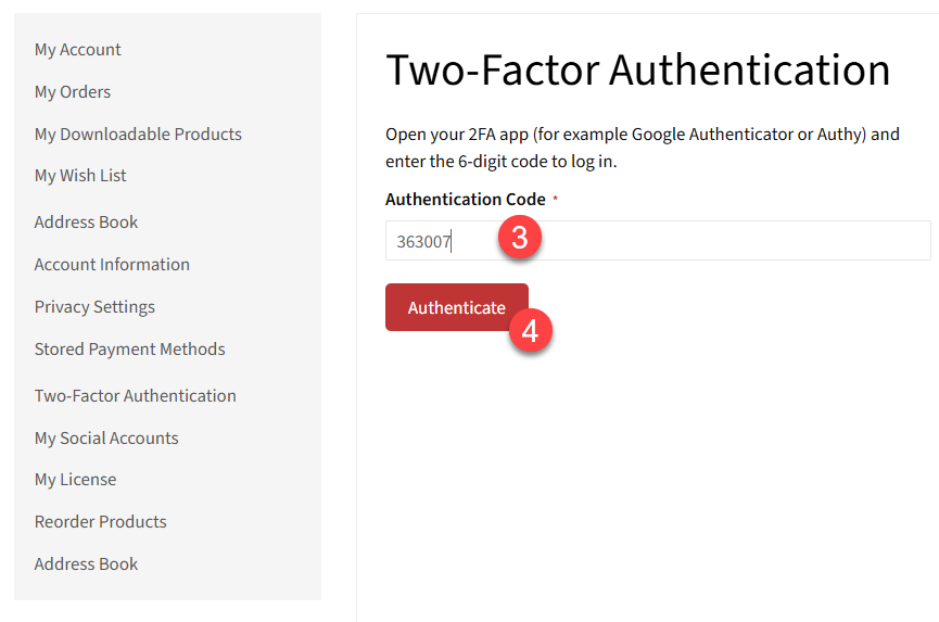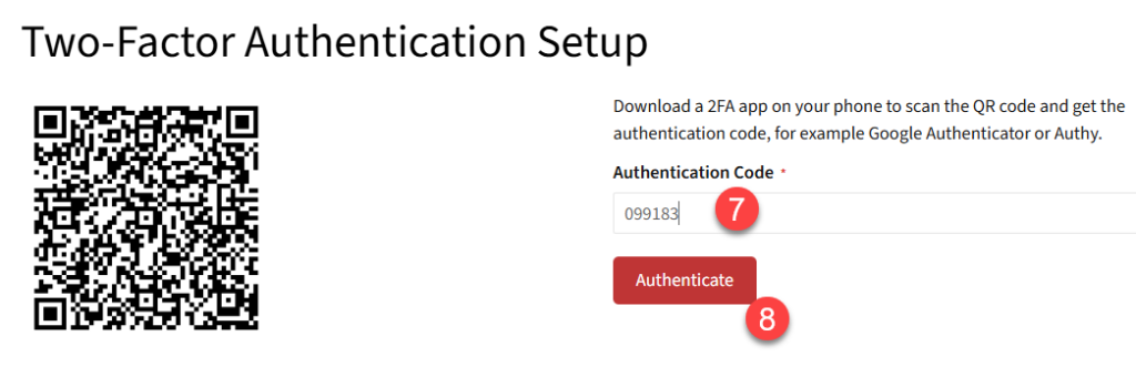 2. Please check your Authentication App (e.g. Google Authenticator, Authy) for the currently valid code: