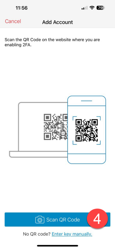 You need to download the Google Authenticator or Authy app on your mobile phone and setup an account there. If you already have one of these apps, you can use it. Open the app.