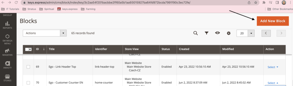 1. Go to Content > Elements > Blocks and press the Add New Block button.