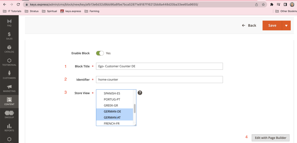 2.1-2.2 Set the Block Title and Identifier. Make sure to use “home-counter” as block identifier for all languages.