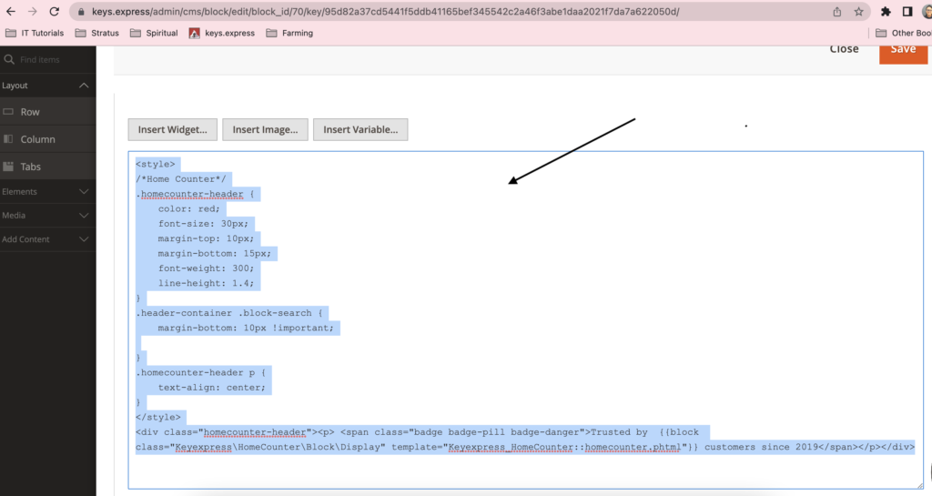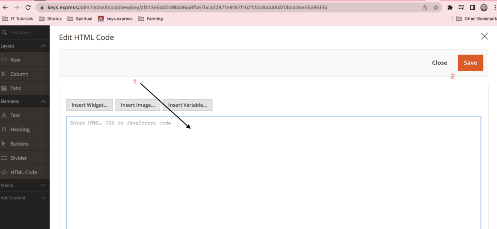 3.1 Enter the Block Content with the help of the HTML code element.