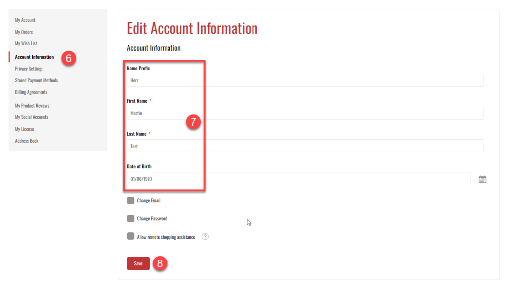 7. Here you can change your personal information like title, name and date of birth (birthday)