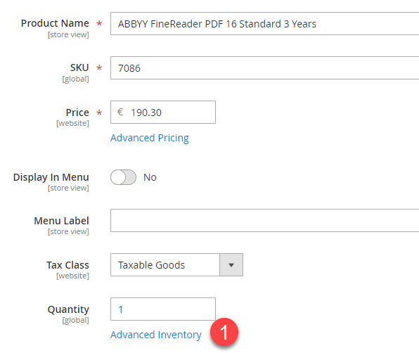1. To set the stock level (threshold), edit the product and go to Advanced Inventory