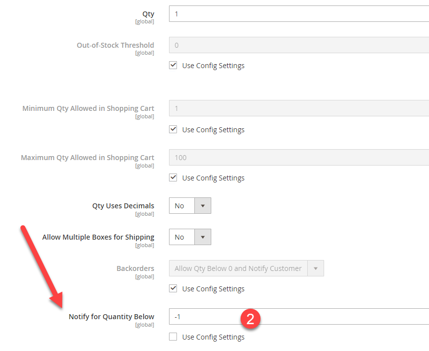 2. Set the Stock level in the field “Notify for Quantity Below” to a number. If the stock falls below this number, it will be included on the list