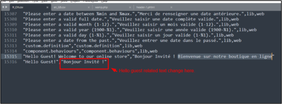 1) The part “Hello Guest” you can change only in .csv file of the theme. Please follow this guide here. /public_html/keysdiscount/app/design/frontend/Sm/ego/i18n => select your csv you want change “Hello Guest” . check our below images and do like this.