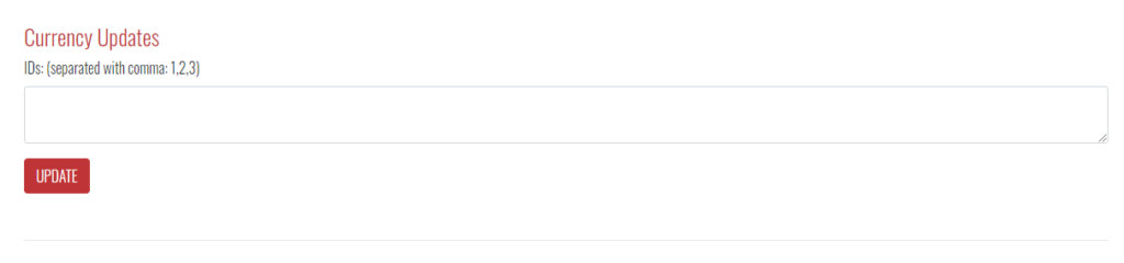 Enter product IDs and click Update to calculate the other currencies from a price set in CHF